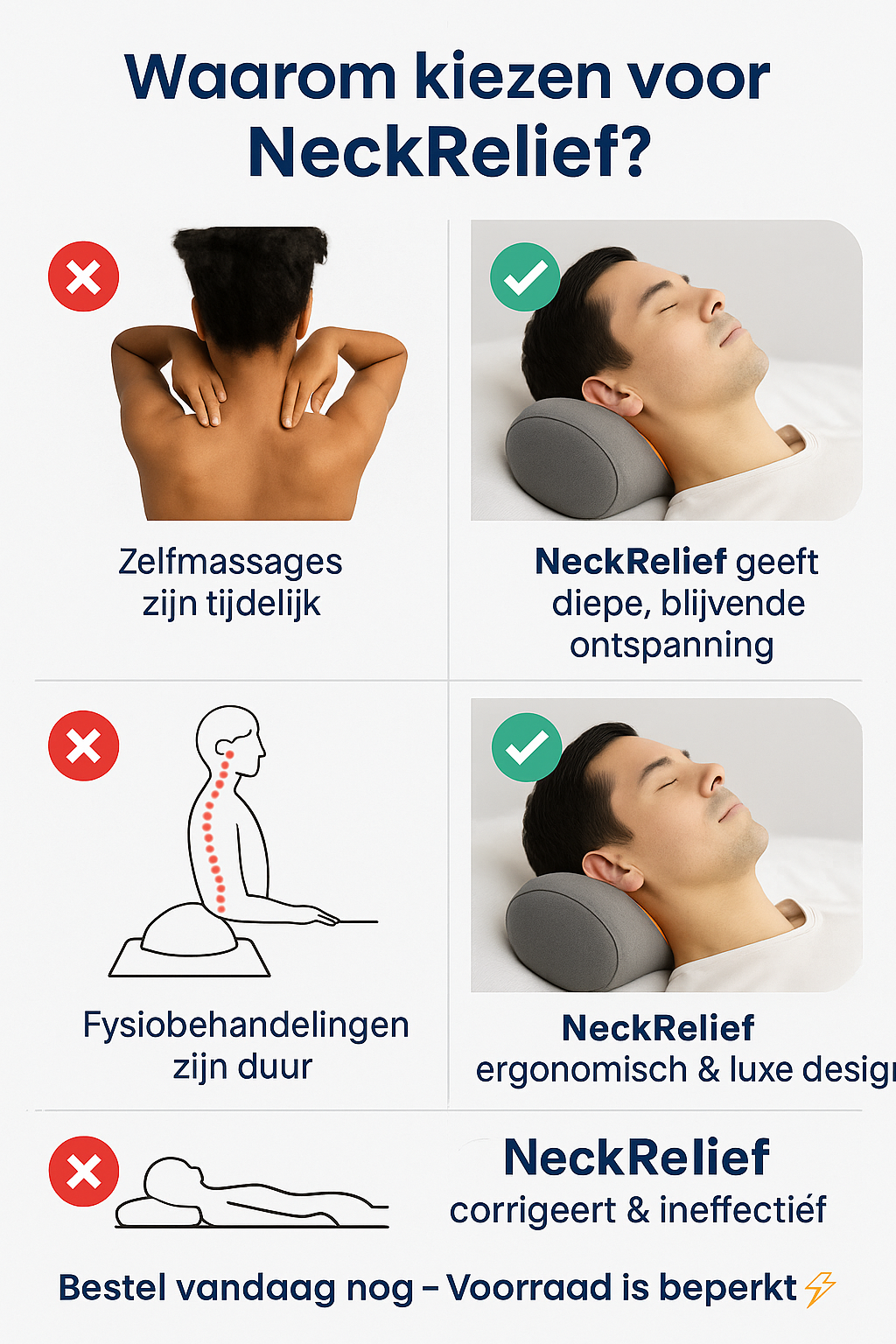 In tegenstelling tot andere nekapparaten die te krachtig of zelfs gevaarlijk kunnen zijn, is NeckRelief ontworpen met jouw veiligheid en comfort in gedachten. De constructie van traagschuim zorgt voor een zachte, veilige pasvorm en biedt optimale ondersteuning zonder ongemak of schade aan je nek te veroorzaken.